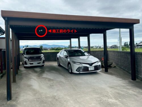 現場を確認した時の写真がこちらです。立派なカーポートに対して、ライトが1台だけ。