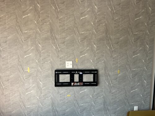 施工は以下の手順で行いました。まず、ふかし壁内部の補強位置と配線ルートを確認します。次にHAMILeX製の壁掛け金具を壁に固定し、水平と耐荷重を確認します。その後、テレビ用の電源および接続ケーブルを整理し、最後に大型薄型テレビを取り付け、角度調整と動作確認を行いました。電気工事士1名で作業を行い、約2時間で施工が完了しました。